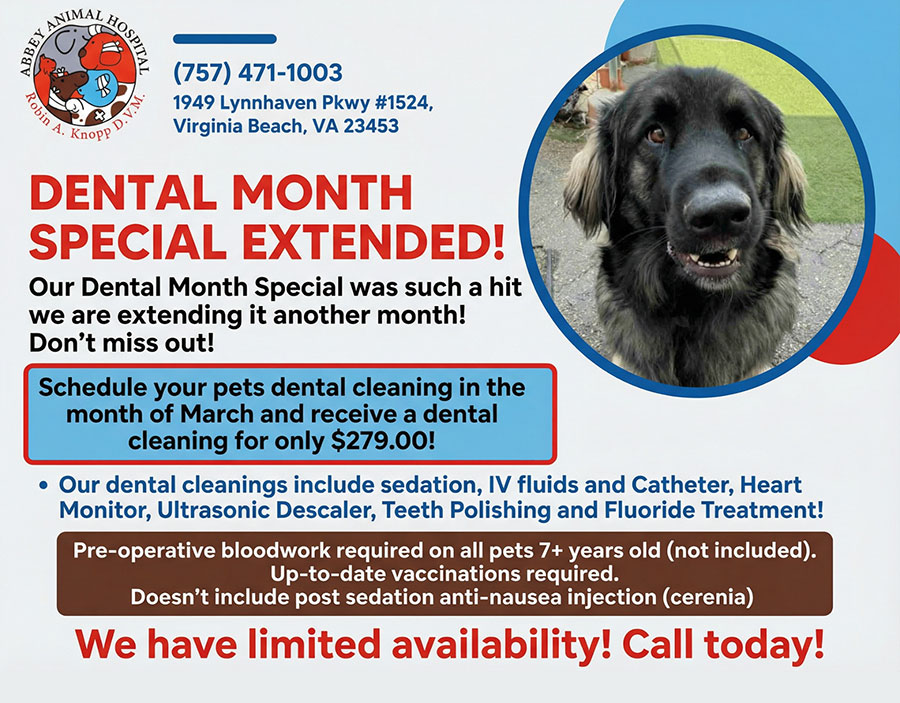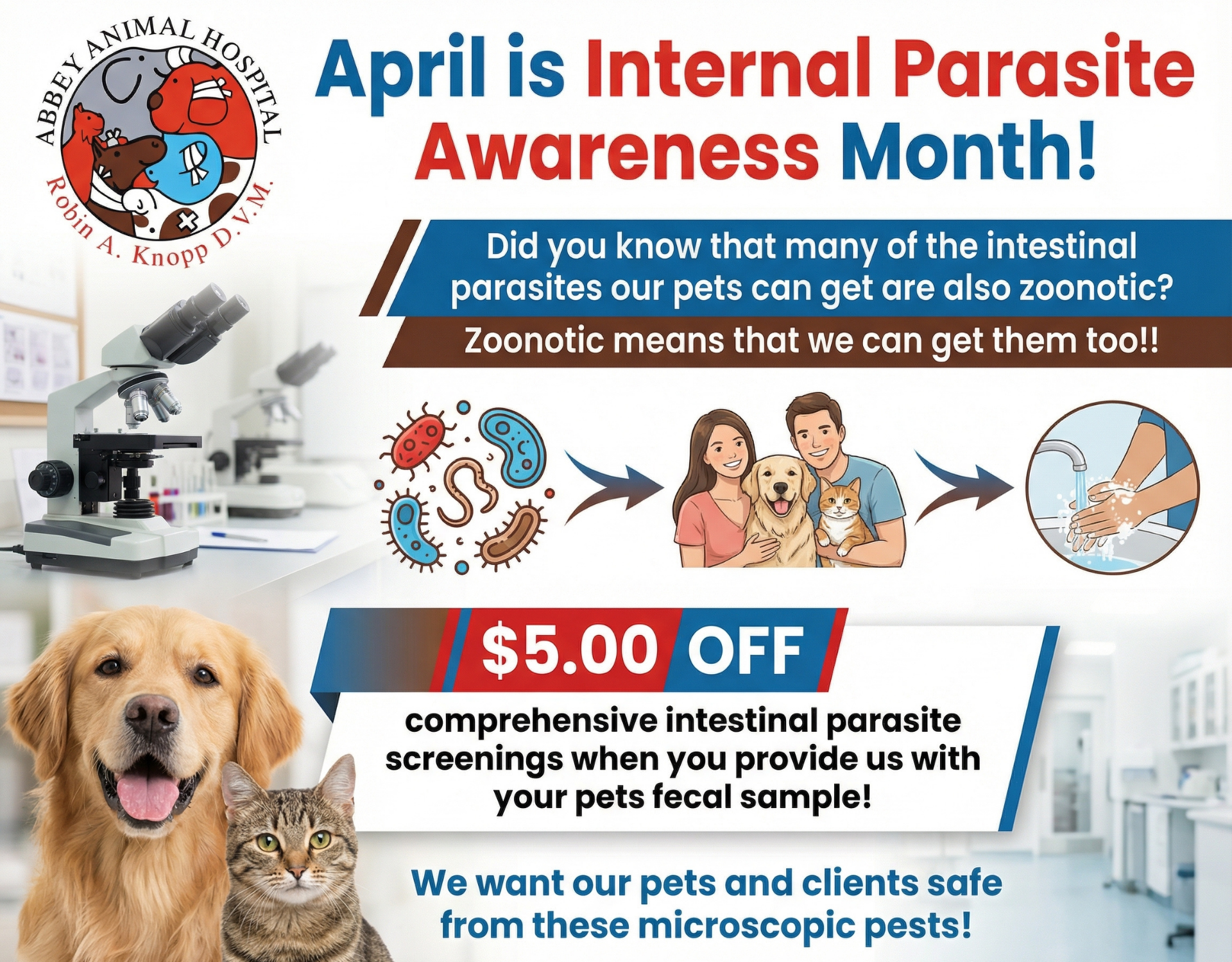 Again, all of us at Abbey Animal Hospital want to thank you and your pets for being a loyal member of our community. We are grateful that you have chosen us as your pet’s health care provider.